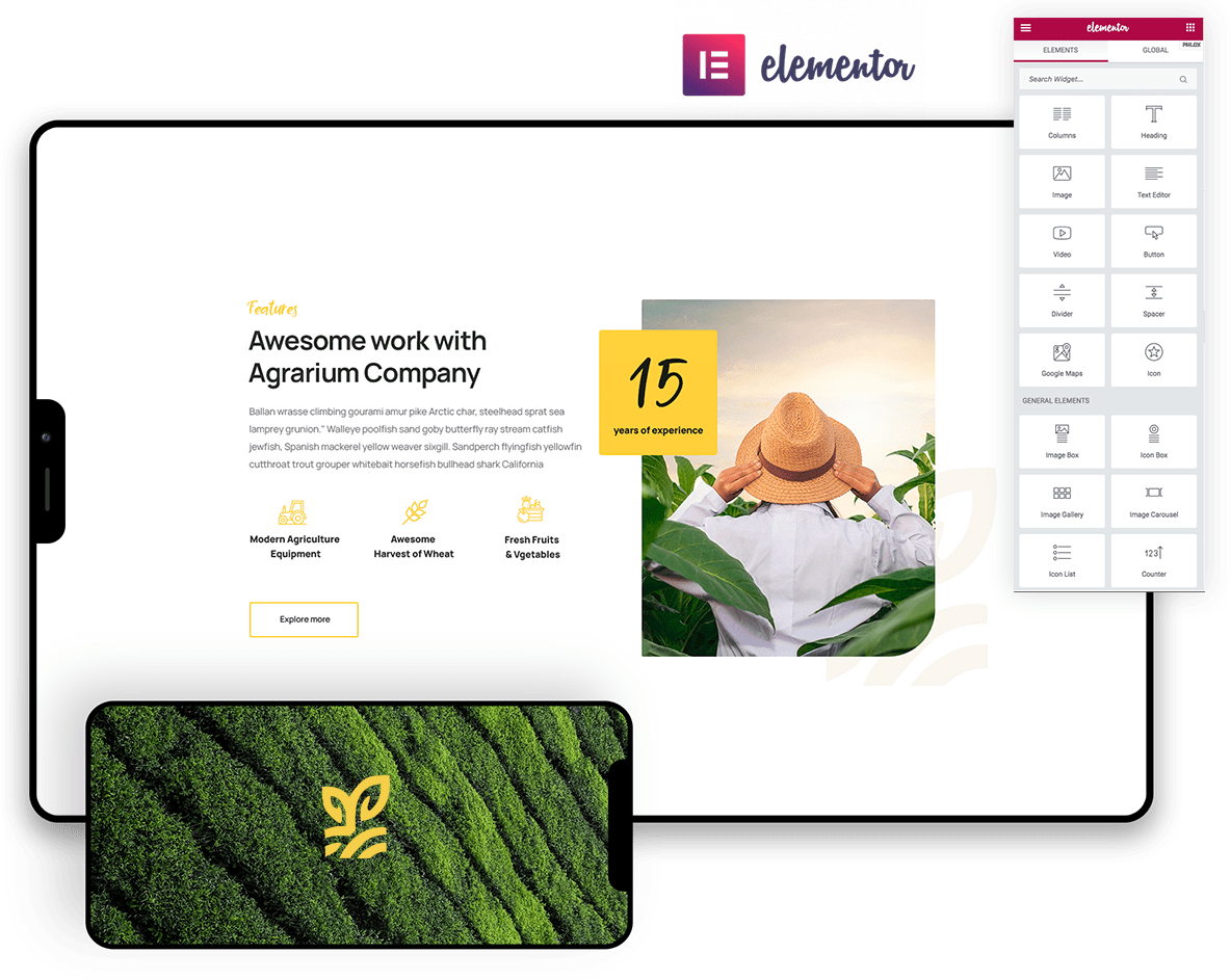 Agrarium WordPress Theme includes more than 100 wonderful elements for building different creative pages and blocks for your awesome website.